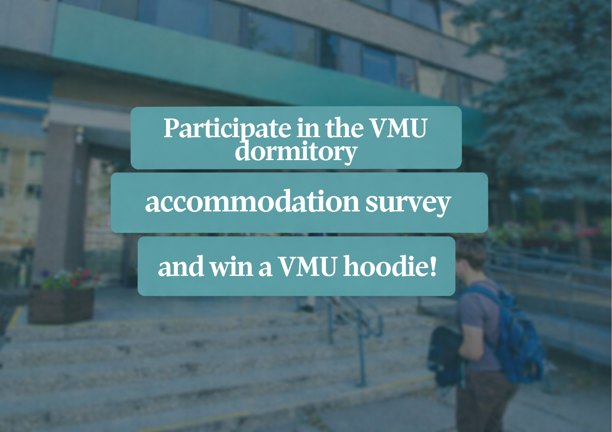We invite you to take part and share your opinion in the university-level survey “Evaluation of Accommodation Services in Dormitories”, conducted by the Student Affairs Department (SRD). The aim of this survey is to learn about the opinions of people living in VMU dormitories regarding accommodation conditions and the services provided.