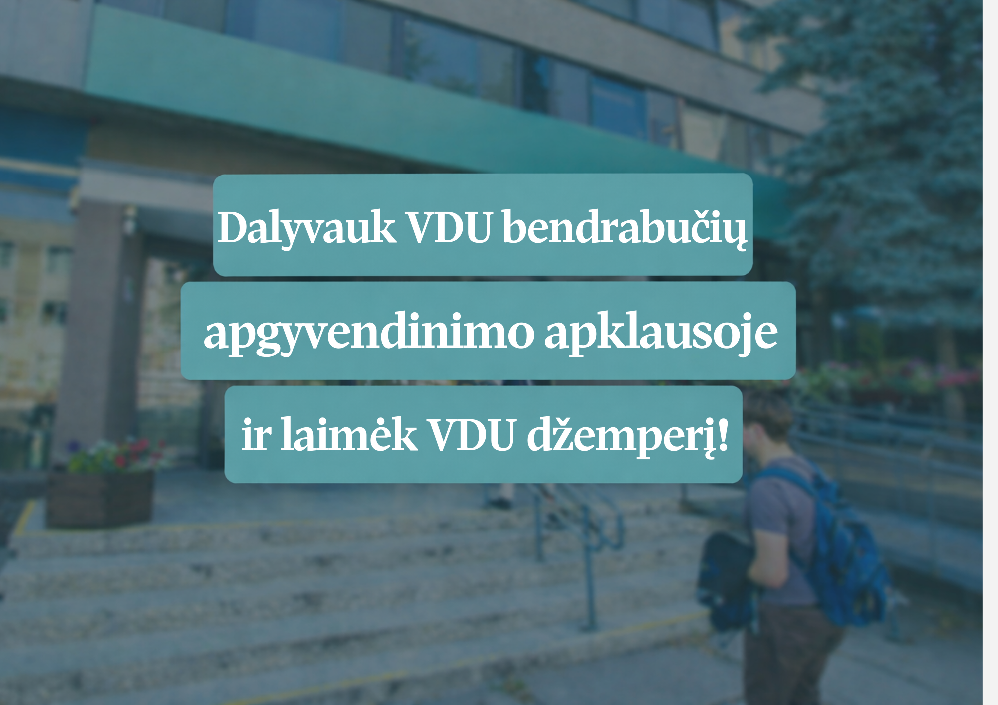 Šiais metais tarp apklausą užpildžiusių studentų bus išrinktas laimėtojas, kuriam padovanosime VDU džemperį. Norint dalyvauti šiame konkurse, apklausos pabaigoje prašome įrašyti savo vardą ir pavardę. Šie duomenys bus naudojami tik laimėtojo nustatymo tikslu.